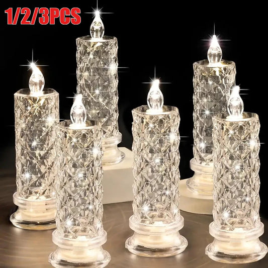 Decor Crystal Candles LED Light Transparent Flameless Battery Power