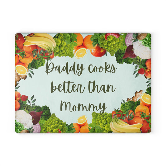 Daddy Cooks Better Than Mommy Glass Cutting Board/Father's Day Personalized Board/Birthday Gift Present For Dads/Trending Now/Decor