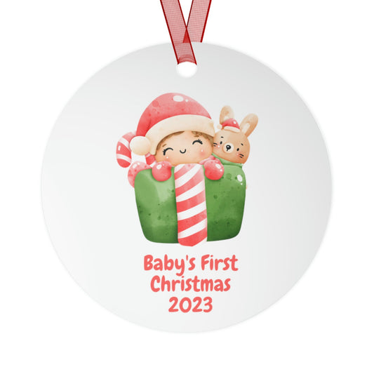 Personalized Christmas Ornament/Baby's First Christmas Metal Ornament/Trending Now/Baby Shower Gift Idea/Baby On The Way/Custom