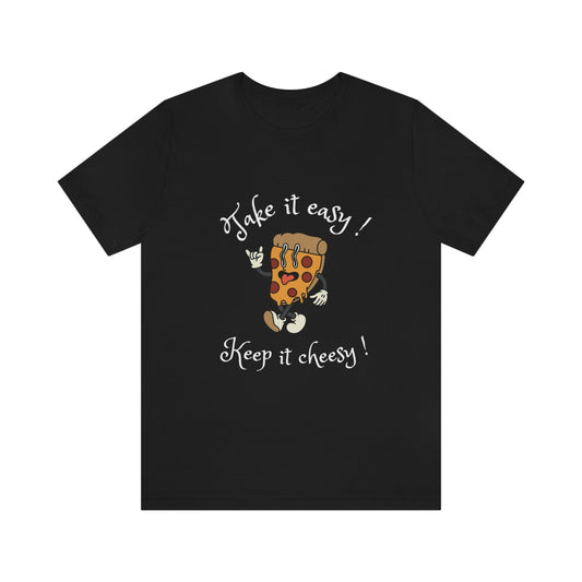 Pizza Lovers T-shirt/Take it Easy Unisex Jersey Short Sleeve Tee/Funny Gift Idea/Birthday Present/Funny Message Shirt/Stay Cheesy