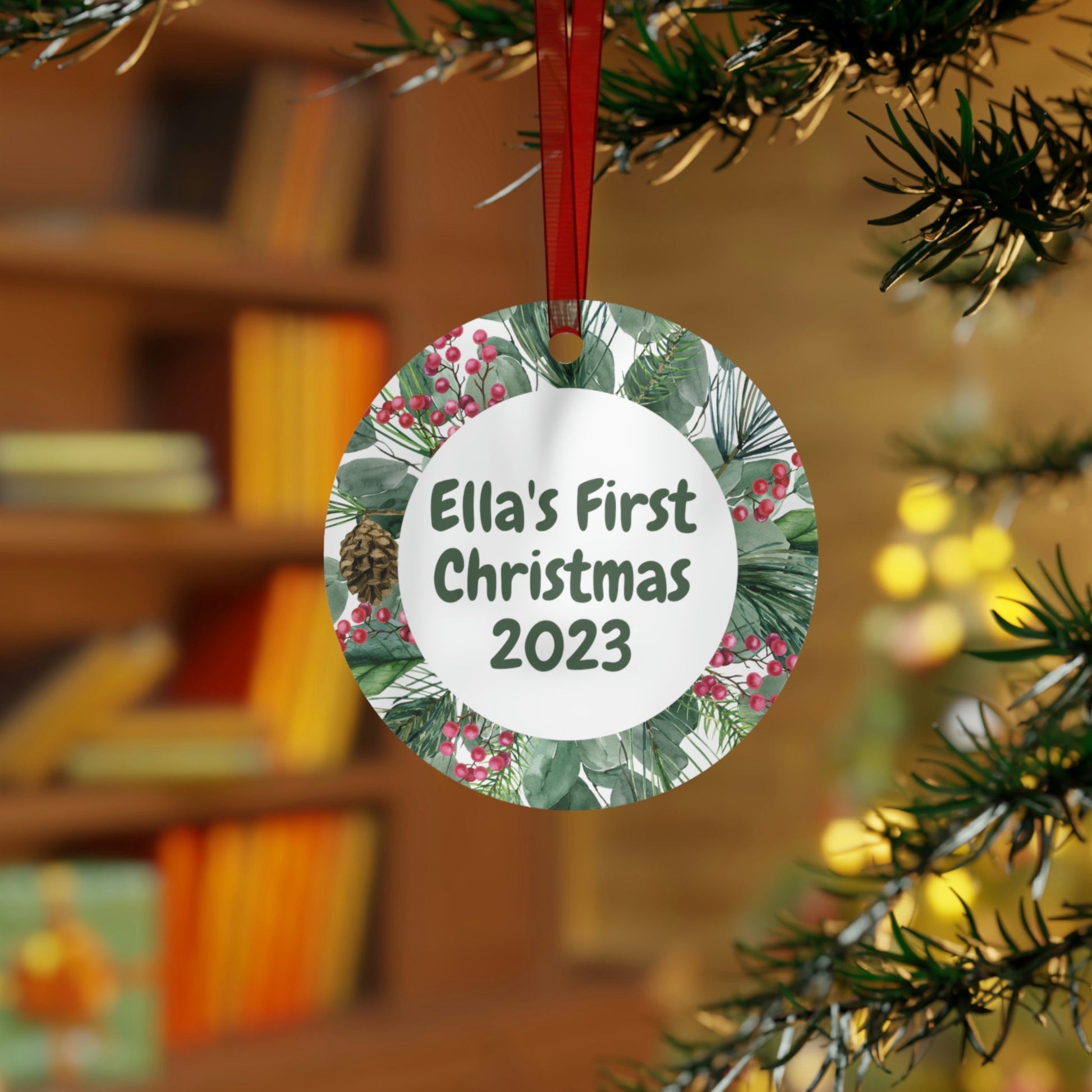 Name Personalized Christmas Ornament/Baby Metal Ornament/Trending Now/Baby Shower Gift Idea/Stocking Present/Christmas Tree