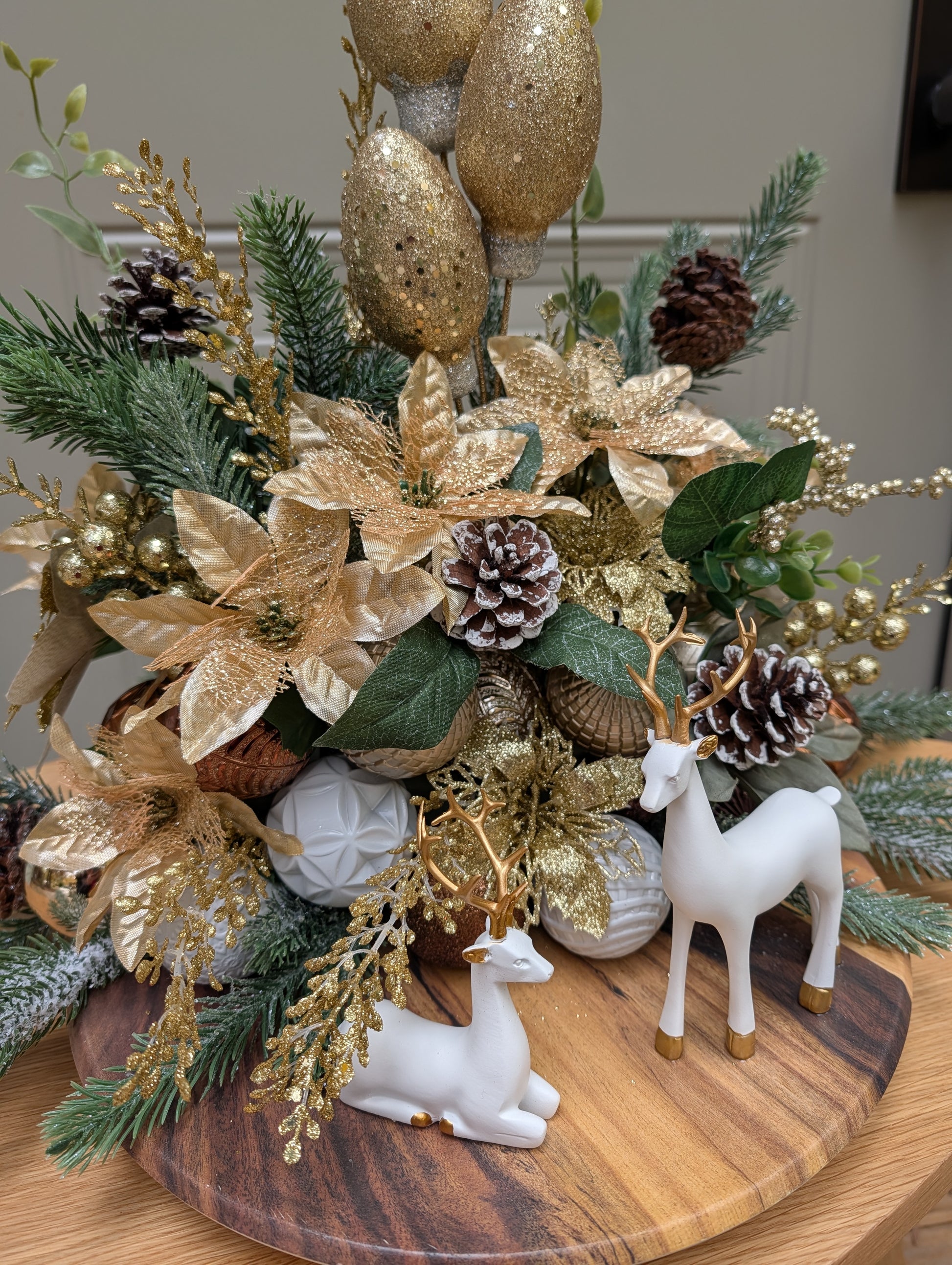 Reindeer Gold Wood Base Centerpiece